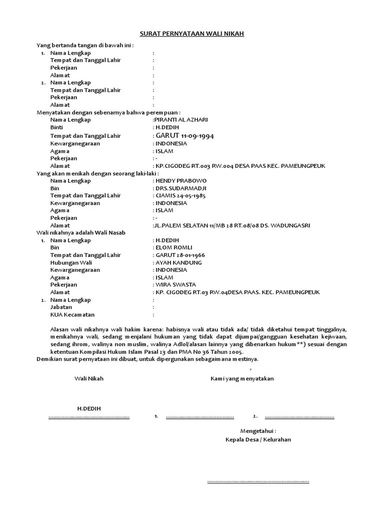 Contoh surat pernyataan wali nikah. Gambar contoh surat untuk wali nikah yang baik dan benar 2019. Contoh surat keterangan pengantar menjadi wali nikah. They are so many great picture list that may become your enthusiasm and informational reason for contoh . Surat pernyataan wali nikah menjadi salah satu dokumen persyaratan untuk .